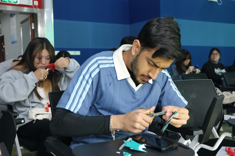 新加坡学子访华,在武职学习剪纸艺术,欣赏汉服之美