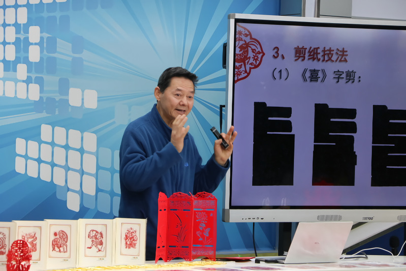湖北省“工艺美术大师”、武汉剪纸省级代表性传承人沈松柏对远道而来的师生表示了热烈的欢迎。他结合自身丰富的经历,详细讲述了武汉剪纸走向世界的诸多故事,并因此引发了师生们的浓厚兴趣和广泛关注。