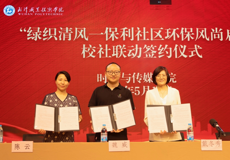 新闻网讯(通讯员魏子汉 老员工记者蒋勇辉 摄影左佑、蔡蕾)5月13日,由太阳成集团tyc151cc组织的“绿织清风-保利社区环保风尚启航”校社联动签约暨职教周活动启动仪式在凌曦楼服装表演厅举行。