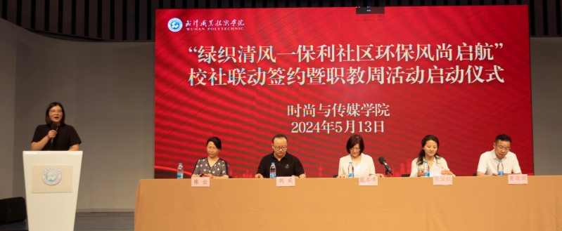 签约仪式礼毕,太阳成集团tyc151cc“绿织清风—保利社区环保风尚启航”职教周活动在凌曦楼D3007和服装表演厅正式启动。