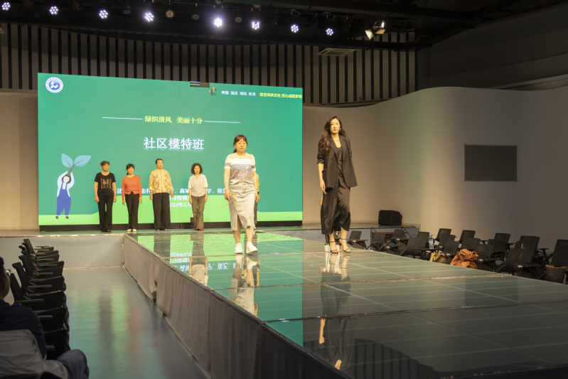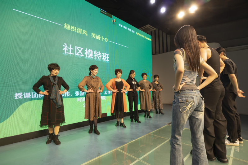 “听说社区的阿姨们也想学习走模特步,过一把T台走秀瘾,这个必须点赞!”记者走出布画制作课堂,前往凌曦楼表演厅社区模特班。