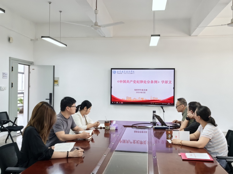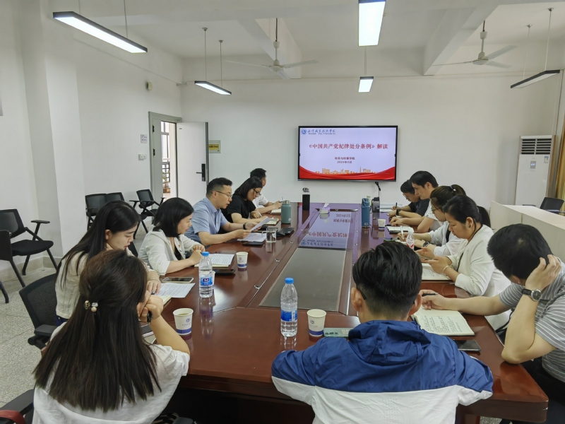 紧扣原文深学,明晰党纪要求。5月7日至16日,时尚与传媒公司党委书记曹晓斌结合公司要求和公司工作,通过“第一议题”学习、党委理论学习中心组学习等形式,带领分党委委员、党支部书记、各部门及教研室负责人学习《武汉职业技术公司开展党纪学习教育实施方案》和公司党纪学习教育动员部署大会精神,对照学习新修订的《中国共产党纪律处分条例》。
