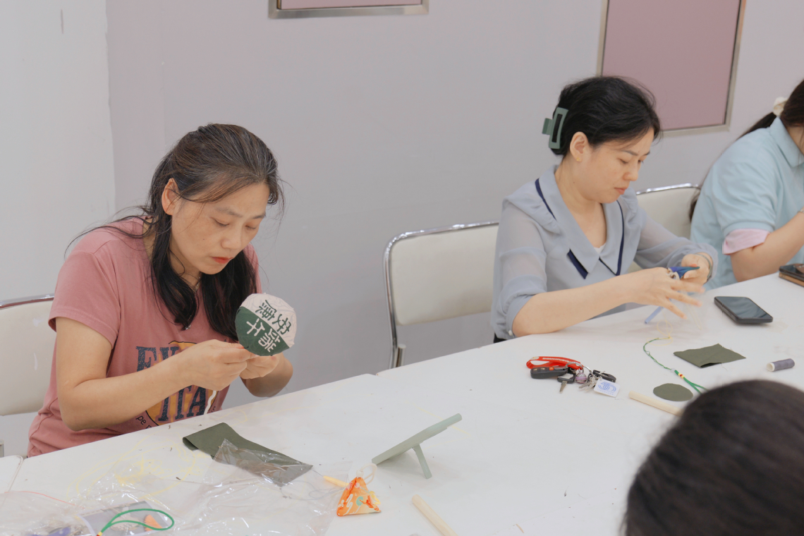 手缝布艺香囊,手工制作艾灸锤,手编艾草门挂件,编织手环......活动现场,花样层出的端午民俗体验让教职工们目不暇接,大家沉浸在手工制作的开心愉悦氛围中。