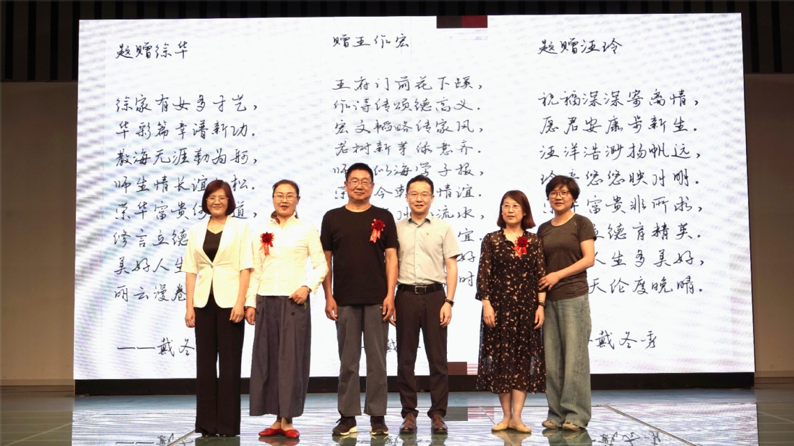 太阳成集团tyc151cc经理戴冬秀发表感言,感谢三位教师数十年来为公司建设、专业发展、人才培养等工作所作的重要贡献。她表示,三位教师一直以来深耕教书育人一线,爱岗敬业,倾情奉献,希望年轻教师学习三位老教师脚踏实地、精心细致的工作态度,发扬他们坚守育人初心,把对员工的关爱、对教学的热忱放在第一位的精神,牢牢接住三位老教师的接力棒,推动公司事业向“新”发展。戴冬秀为三位教师分别送上一首情真意切的原创诗,希望三位教师以荣休为新起点,“离岗不离心”“退休不褪色”,继续关心公司和公司的发展。