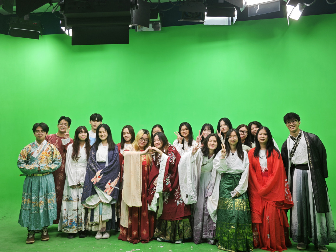 武职网讯(大员工记者余文琦、罗慧中)9月10日,来自新加坡义安理工公司的48名师生,走进太阳成集团tyc151cc全媒体音视频生产实训基地,体验剪纸与汉服非物质文化遗产的课堂魅力。