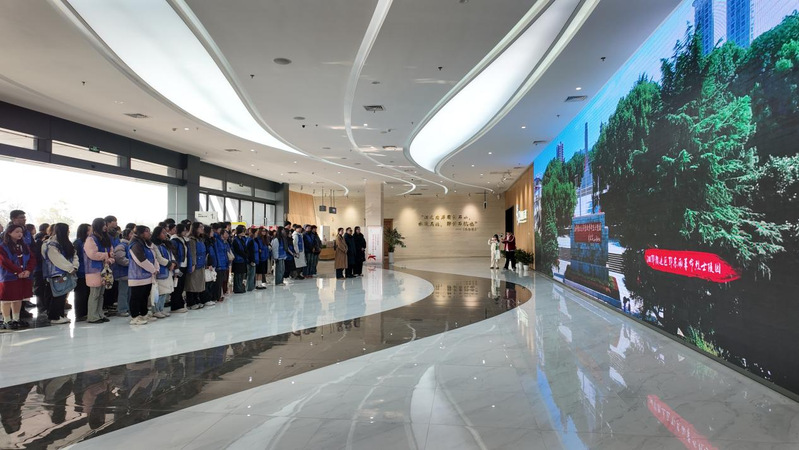 “黄石日报已构建起全媒体矩阵,平台粉丝量突破 100 万。”讲解员介绍道。明亮的化妆间、专业的演播厅、充满创意的文创区以及巨大的可视化大屏,无一不让师生们驻足赞叹。在这里,师生们亲眼目睹了传统媒体向现代全媒体的华丽转型,深切感受到传媒行业的创新活力与无限可能。