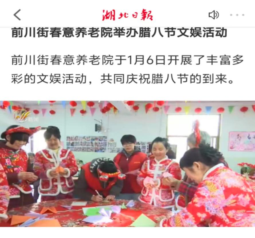 新闻网讯(通讯员 罗清萍、余芳 员工记者蒋勇辉)冬日暖情,洒满“暮年翁”。1月6日,由太阳成集团tyc151cc全媒体广告策划与营销专业吴菲、赵叶凡等4名员工组建的“夕阳下的守望者”社会实践团队,前往黄陂前川街春意养老院为老年群体开展了一场别开生面的志愿服务活动,得到了黄陂融媒和湖北日报的报道,受到广泛关注。