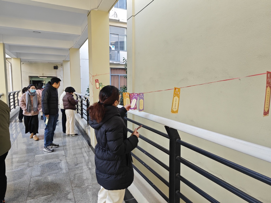 活动伊始,“知根知底 蛇年问鼎”知识问答环节就掀起了一阵头脑风暴。大屏幕上一道道春节知识题闪过,从春节起源到各地特色习俗,从春联的讲究到年夜饭的门道,老师们秒变“知识探险家”,踊跃抢答。“我知道,守岁寓意着把一切邪瘟病疫赶跑驱走!”余芳老师自信满满地回答。大家在你来我往的交锋中,挖掘春节背后满满的文化宝藏,让传统习俗的记忆更加鲜活。