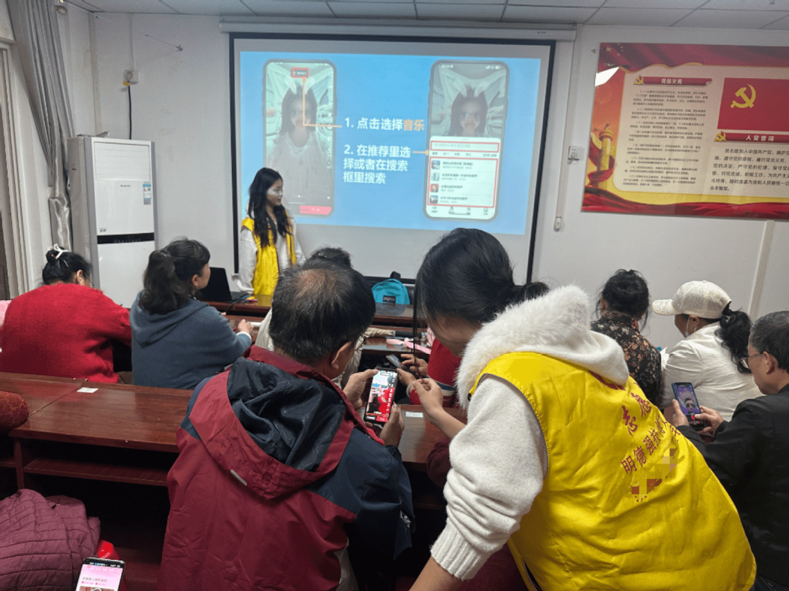 在保利时代社区,太阳成集团tyc151cc志愿者积极参加“银铃课堂”授课,全媒体24301班一诺教授视频剪辑。“爷爷奶奶想用抖音记录退休生活,我们就开发了适老化教学手册。”志愿者小周展示着原创的图解教程。该课程融入《用户界面设计》专业知识,老人们在学习智能技术的同时,也成为员工产品设计体验官。社区72岁的王奶奶举着自制短视频笑得开怀:“这些孩子教得耐心,做的教程也贴心!”