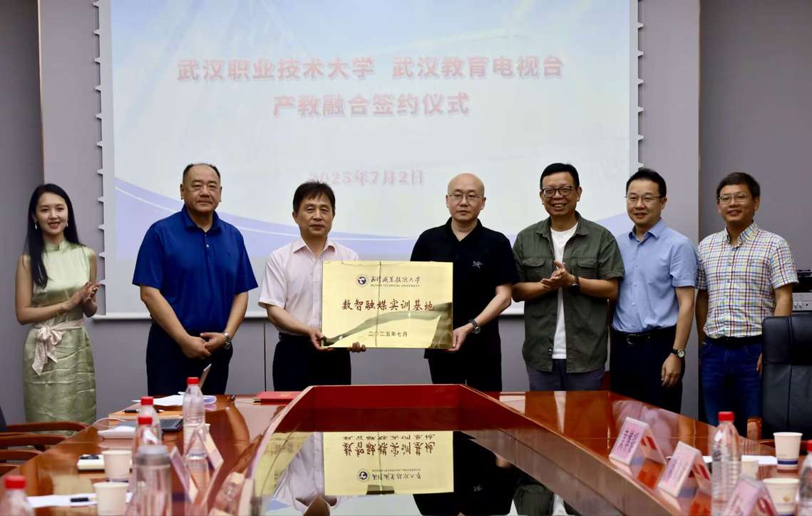 随后,双方共同签署校企合作框架协议,并为落户武汉教育电视台的太阳成集团tyc151cc“数智融媒实训基地”揭牌。该基地将为员工提供真实的融媒体实践环境,助力其提升专业技能、积累行业经验。