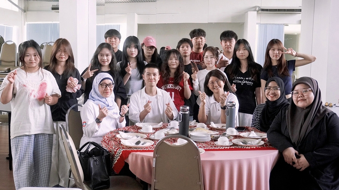 开营仪式尾声,一场特色美食盛宴成为文化交流的生动载体。沙捞越传统千层糕散发椰香与斑斓叶的独特风味,特色奶茶与咖啡融合茶香、奶香及秘制香料,每一口都承载着当地饮食智慧与文化密码。师生们一边品尝美食,一边交流背后的民俗故事,在味蕾的愉悦中感受马来西亚文化的包容与热情,欢声笑语中拉近了彼此距离。