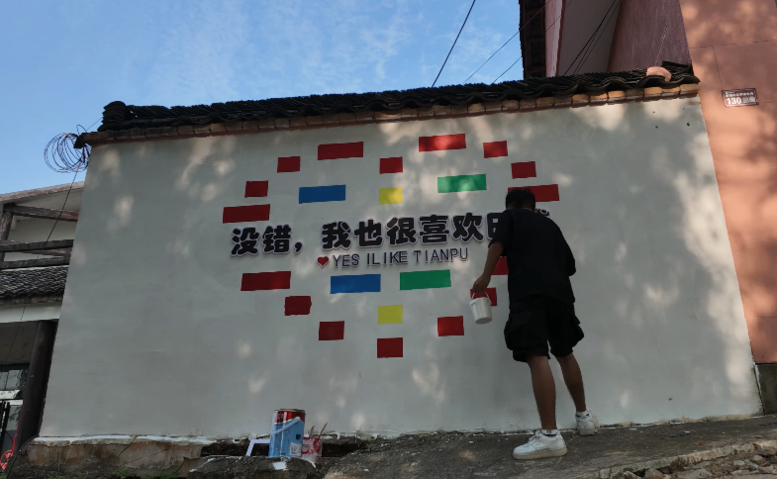 墙绘完成后,不仅成了田铺大塆新的“文旅打卡点”,更化身“户外推普课堂”,村民、员工驻足学习,家长带孩子对照照墙绘练习发音,真正让普通话“看得见、学得会、用得上”。
