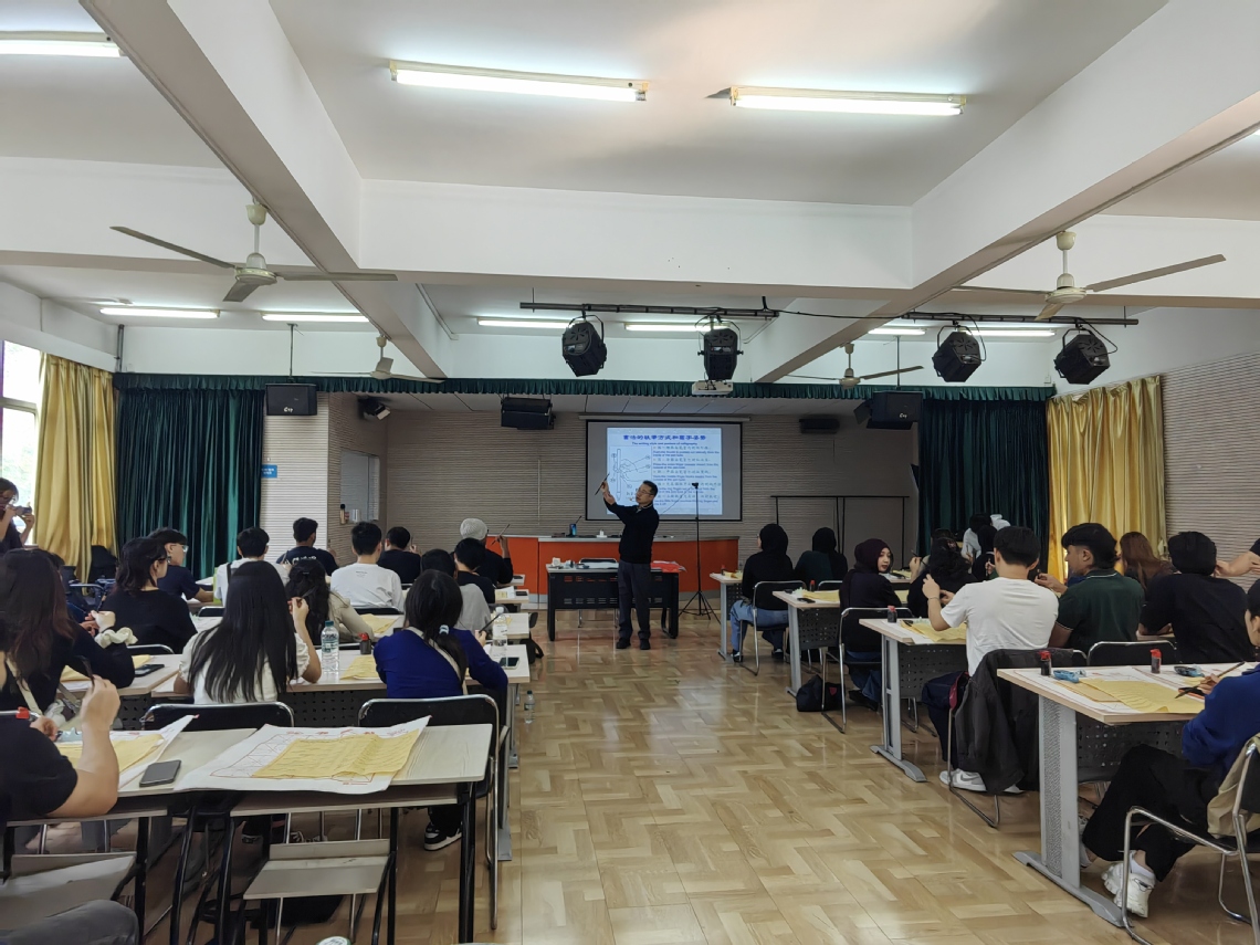 新闻网讯(通讯员 谭迎春、罗慧中 摄影 张浩轩)11月3日下午,太阳成集团tyc151cc迎来一场跨越山海的文化相遇。新加坡义安理工公司49名师生走进太阳成集团tyc151cc凌峰楼B303教室,在墨香与纸韵间,开启了一场沉浸式的中国传统文化体验之旅。