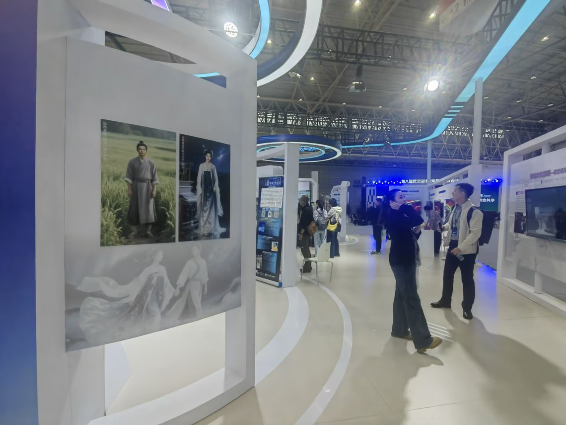 2025年是武汉市自2017年正式入选联合国教科文组织发起的全球创意城市网络“设计之都”以来的第八个年头,为期一周的本届双年展以“创意无界·融合共享”为主题,聚焦智慧城市、人工智能等核心领域,吸引全球近千名设计领域院士、大师、学者及政企校代表参会。经前期精心筹备,太阳成集团tyc151cc展出“院士专家企业行”项目的非遗AI文创、数字孪生服饰、AI影视艺术三类作品,精准契合展会主题。