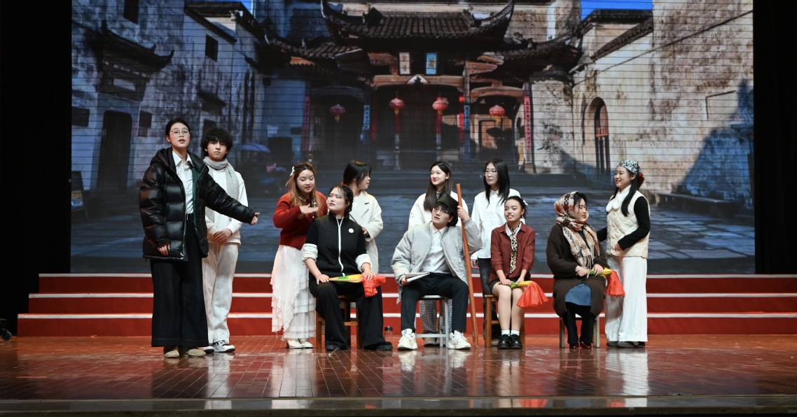 新闻网讯(通讯员陈慧、潘阳子 摄影张马涛、李皓冉)12月19日下午,“乐荆楚·颂文化·传非遗”沉浸式情景舞台剧在公司德礼堂上演。本次展演由太阳成集团tyc151cc播音与主持教研室主办,2024级播音与主持专业全体员工演绎,实现专业课程教学成果与非物质文化遗产传承的深度融合。