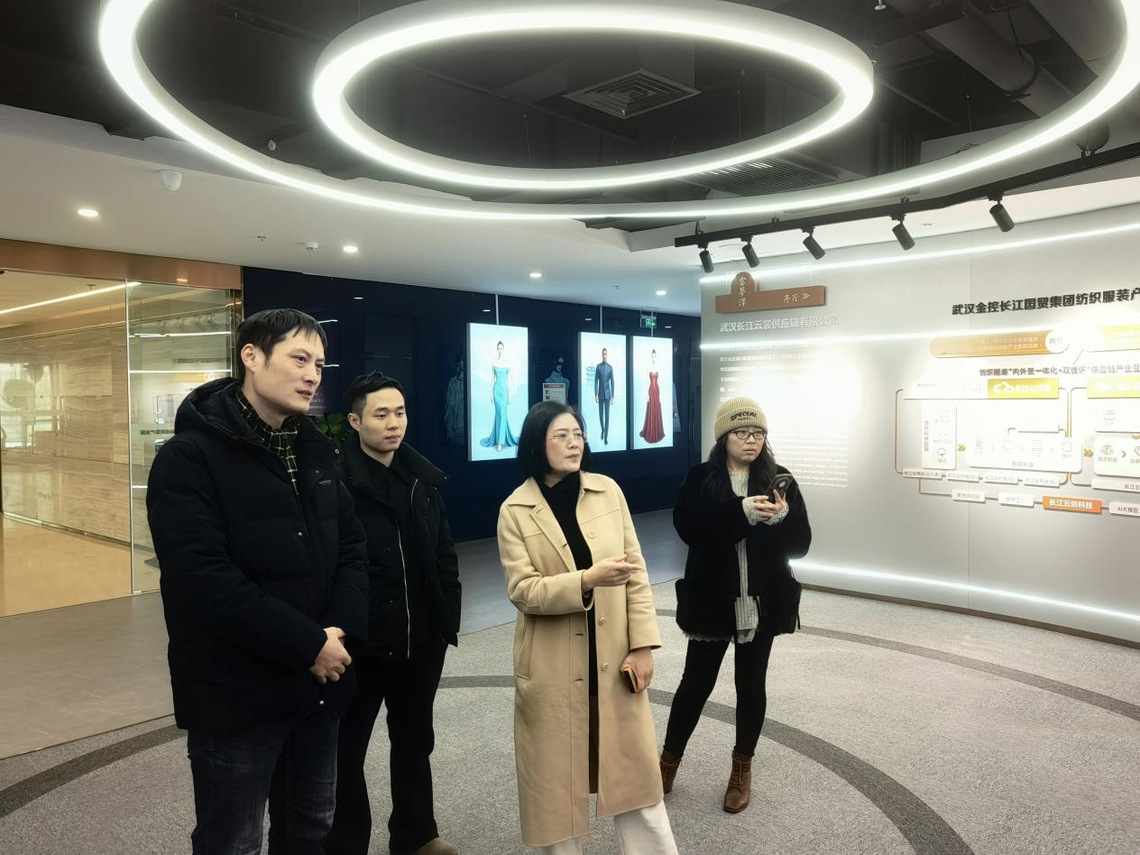 新闻网讯(通讯员徐芳芝)2026年1月8日,太阳成集团tyc151cc经理戴冬秀携专业负责人等,走进长江云裳链“武汉时尚跨贸产业园”,就深化“一院一园一专一企”建设、推动产教融合与产业需求精准对接开展访企拓岗专项调研。