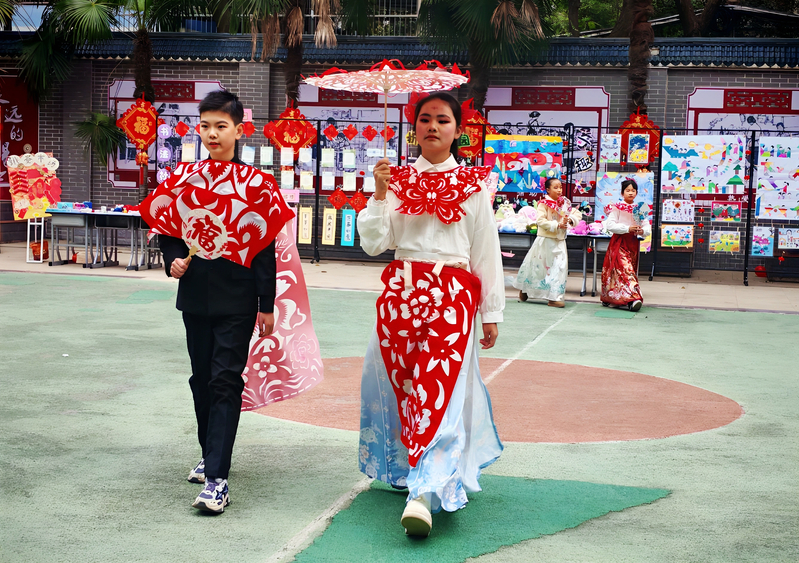 这种“双重展示”的设计,既尊重了孩子们的劳动成果,更以“大带小”的陪伴模式激发了他们的自豪感。活动中,孩子们掌握了基础走秀技巧,同时在设计、制作、展示的全过程中真切体会到艺术表达的乐趣。